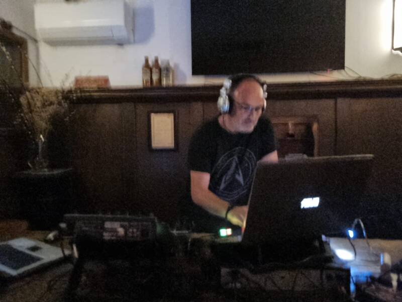 Nog een verlaat appje van een bezoeker aan een feest waar wij live mochten draaien. Ze had een foto gemaakt van de laatste voorbereidingen. Vlak voordat de deuren open gaan, alvast de eerste nummers gereed zetten. Hierna de lichten uit, feestverlichting aan, deuren open en de gasten naar binnen.
